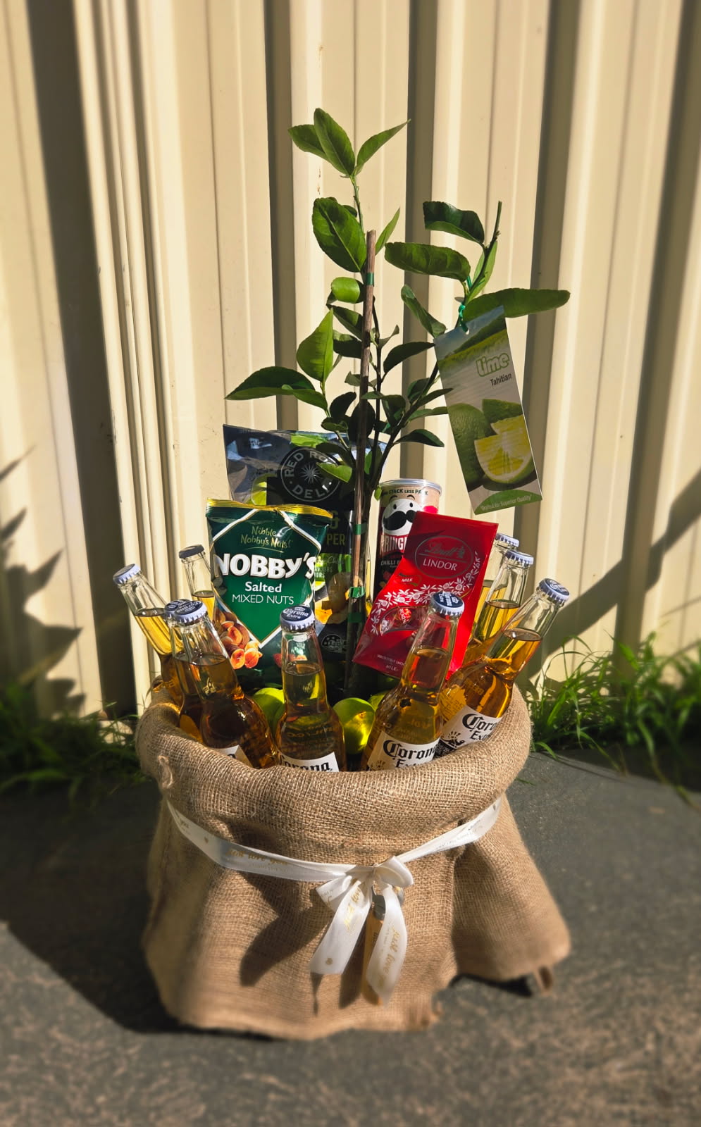 Add a zesty twist with JUST ADD LIME! This fun gift set includes a lime tree with a pot, 12 Corona beers, two types of crunchy chips, peanuts, and a sweet chocolate treat. Plus, enjoy a gift voucher from Connor’s for even more surprises. Perfect for brightening any day with a splash of flavor and fun!